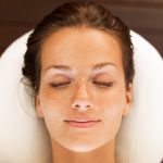 A young woman lying in a health spa